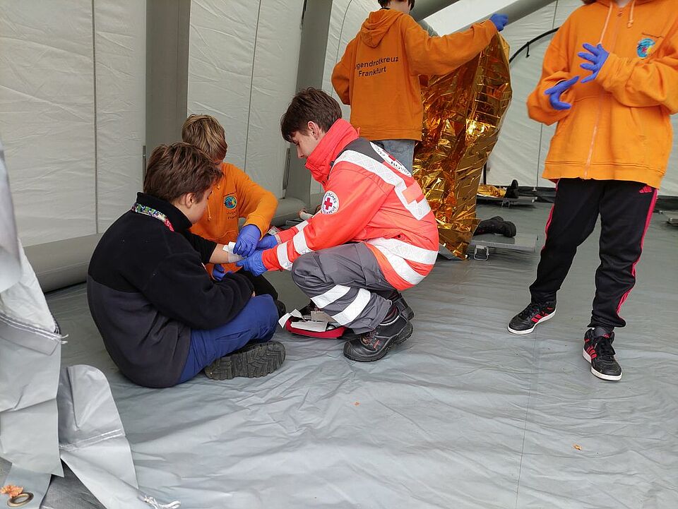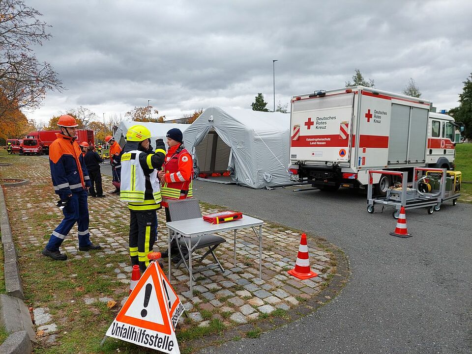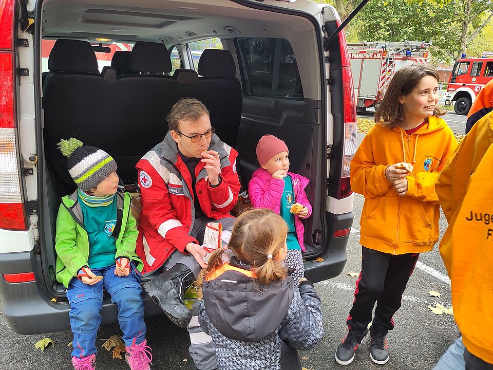 Am 25. Oktober 2025 fand die Herbstabschlussübung der Jugendfeuerwehr Frankfurt statt. Das Jugendrotkreuz des Ortsvereins Rettungswache Bergen-Enkheim unterstützte dabei mit einem Behandlungsplatz zur Versorgung der Verletzten.