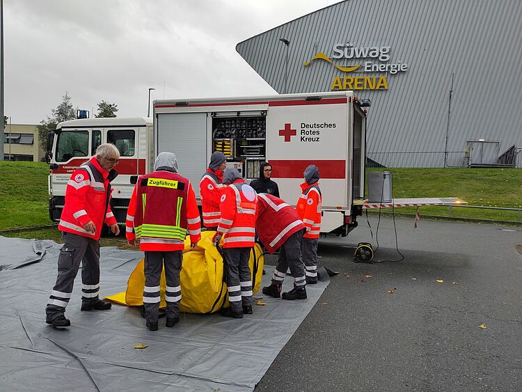 Innerhalb von knapp einer Stunde waren alle Patientinnen und Patienten fachgerecht versorgt. Anschließend hieß es im strömenden Regen: Zelt abbauen, Material verpacken und alles wieder einsatzbereit machen. Zum Abschluss gab es noch eine wohlverdiente Stärkung, bevor sich alle nach einem spannenden und lehrreichen Tag auf den Heimweg machten.